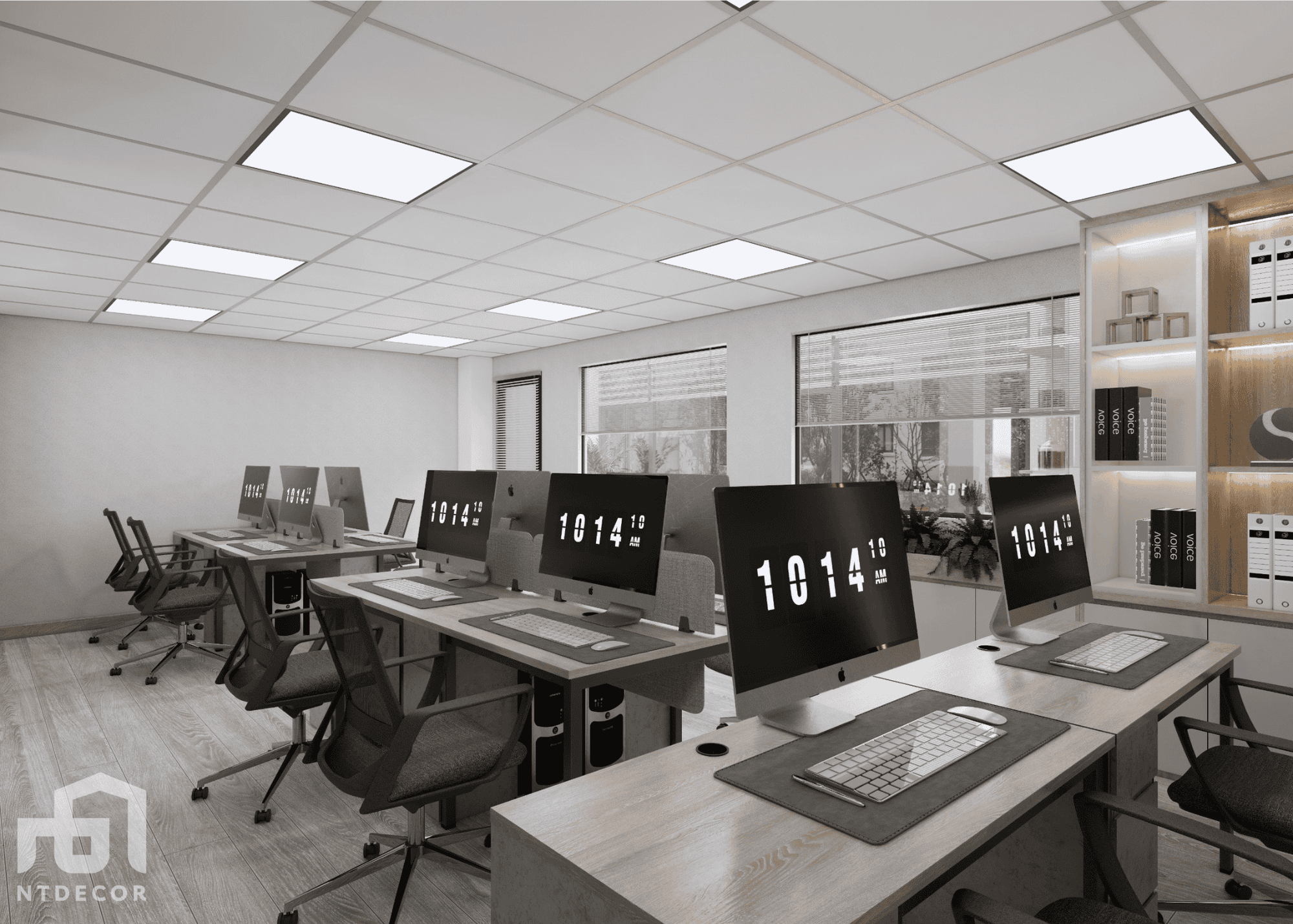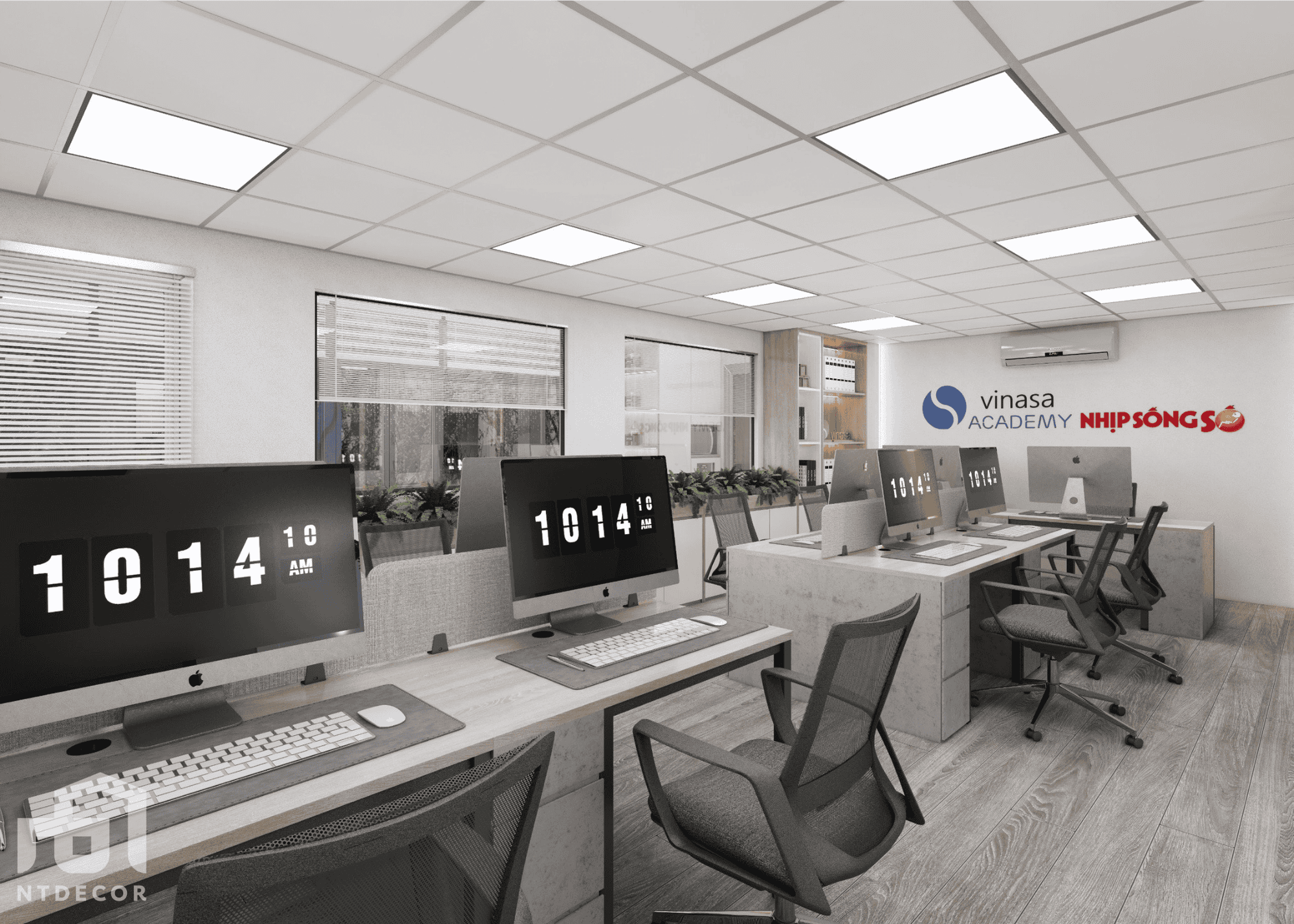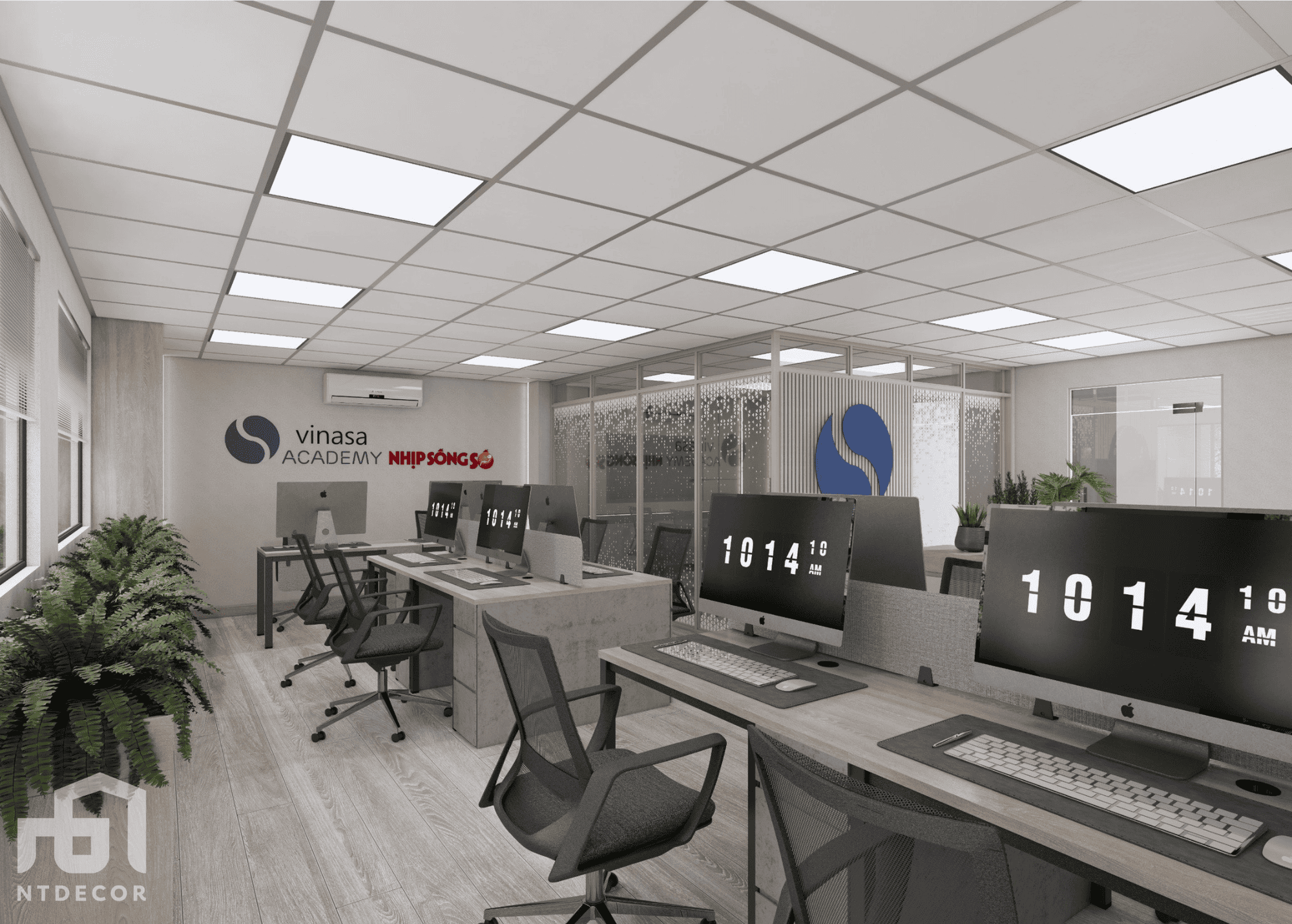- Gray tones are always a symbol of modernity and minimalism in interior design. For office space, gray creates a delicate, elegant and equally luxurious beauty. Combined with blue accents, Vinasa Office workspace becomes fresh and full of energy, helping to inspire inspiration and creativity for employees.