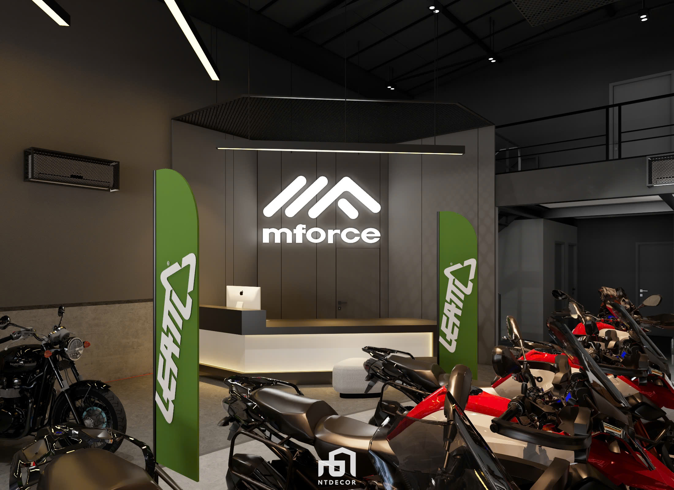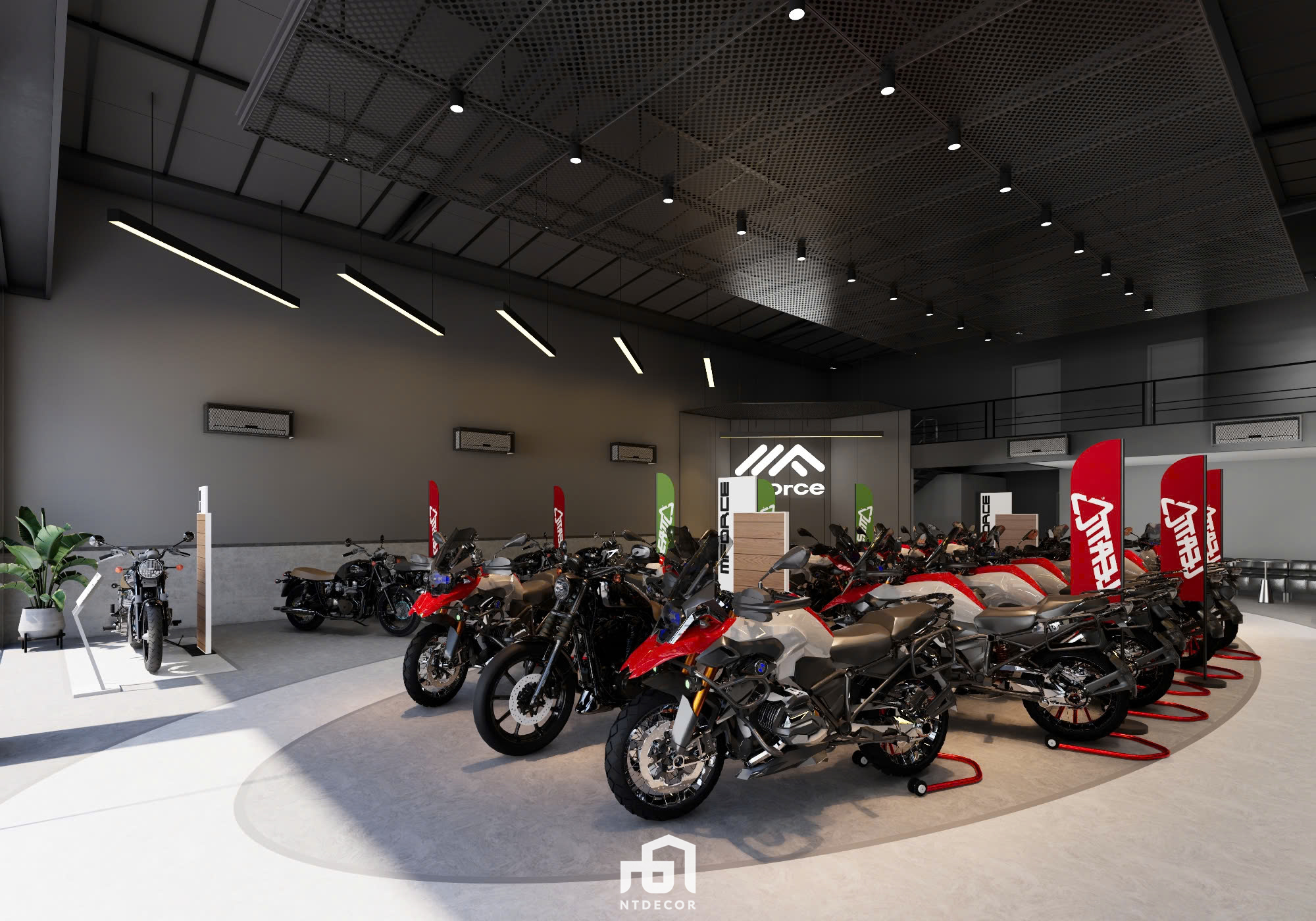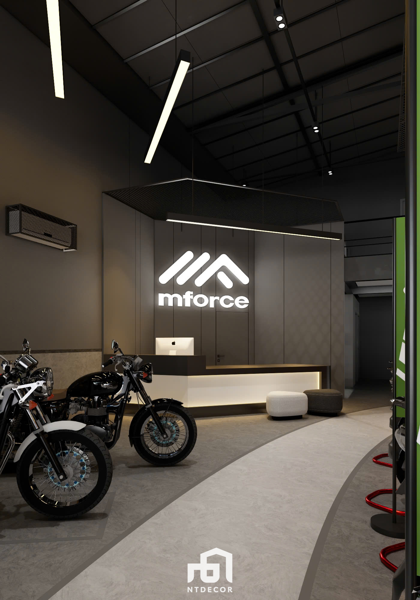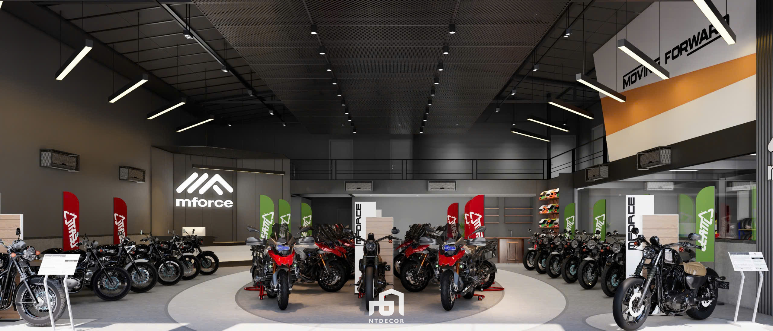 Mforce Vietnam, một thương hiệu đang tạo dấu ấn mạnh mẽ trong lĩnh vực phân phối xe mô tô, đã đặt ra một bài toán đầy thách thức: xây dựng một không gian showroom không chỉ để trưng bày sản phẩm mà còn phải là nơi thể hiện trọn vẹn tinh thần “Moving Forward” – Luôn tiến về phía trước. Dự án thiết kế và thi công showroom Mforce ra đời nhằm hiện thực hóa tầm nhìn đó, tạo nên một điểm đến đẳng cấp, truyền cảm hứng cho cộng đồng yêu xe.