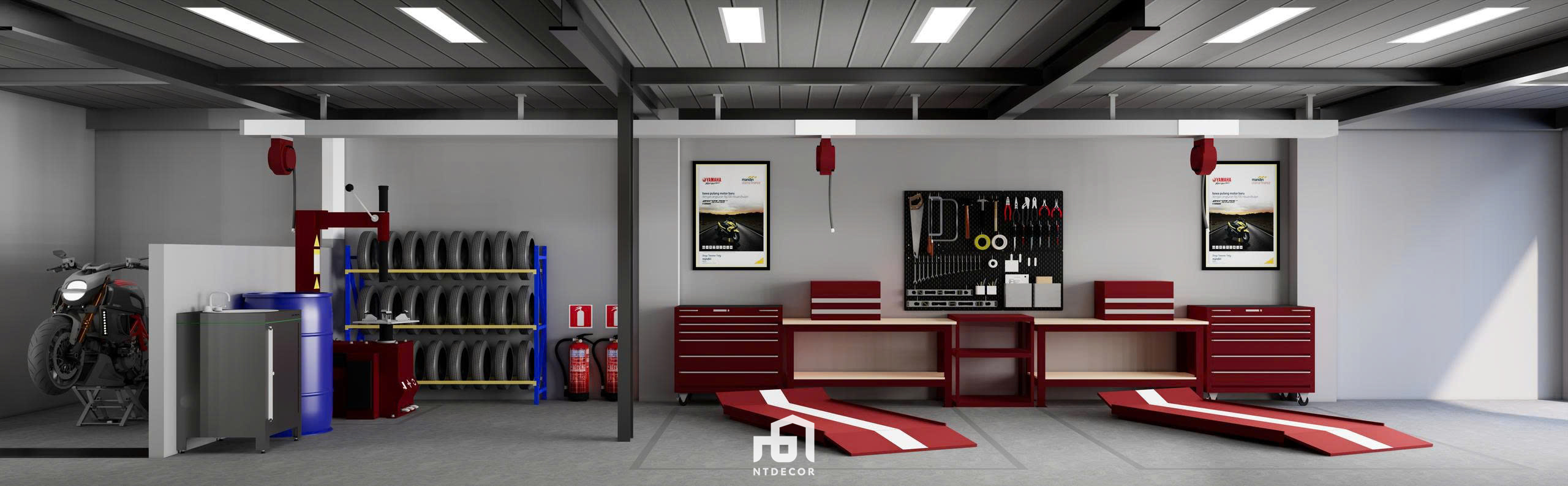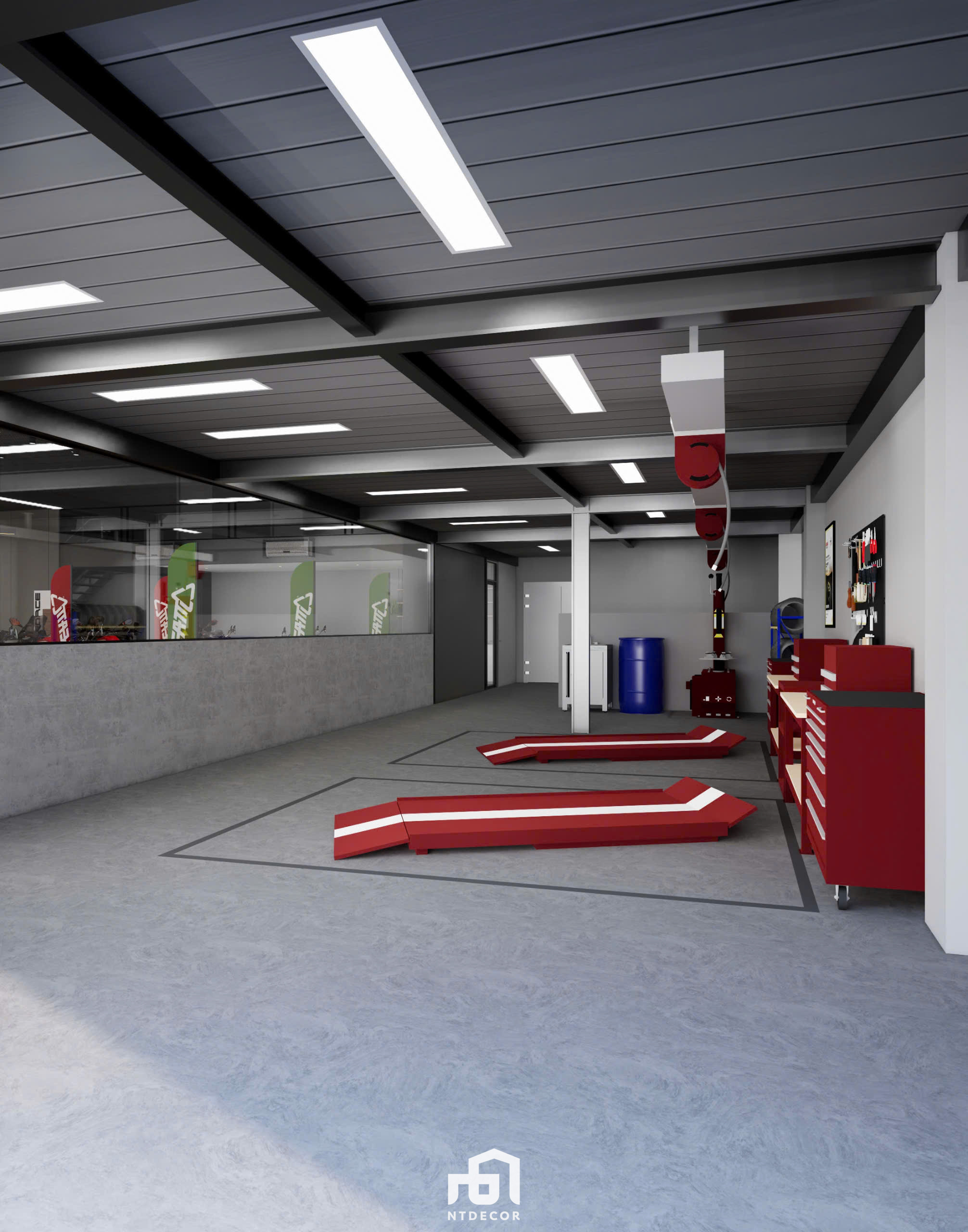 Đặc biệt, khu vực xưởng dịch vụ (Service) được thiết kế sạch sẽ, ngăn nắp và hiện đại không kém gì không gian trưng bày. Với đầy đủ trang thiết bị chuyên dụng, hệ thống tủ đồ nghề gọn gàng và màu sắc đỏ – xám năng động, khu vực này không chỉ đảm bảo công năng sửa chữa mà còn củng cố niềm tin của khách hàng về sự chuyên nghiệp và uy tín của Mforce. Đây là một chi tiết đắt giá, cho thấy sự quan tâm toàn diện của thương hiệu đến trải nghiệm “sau tay lái” của mỗi khách hàng.