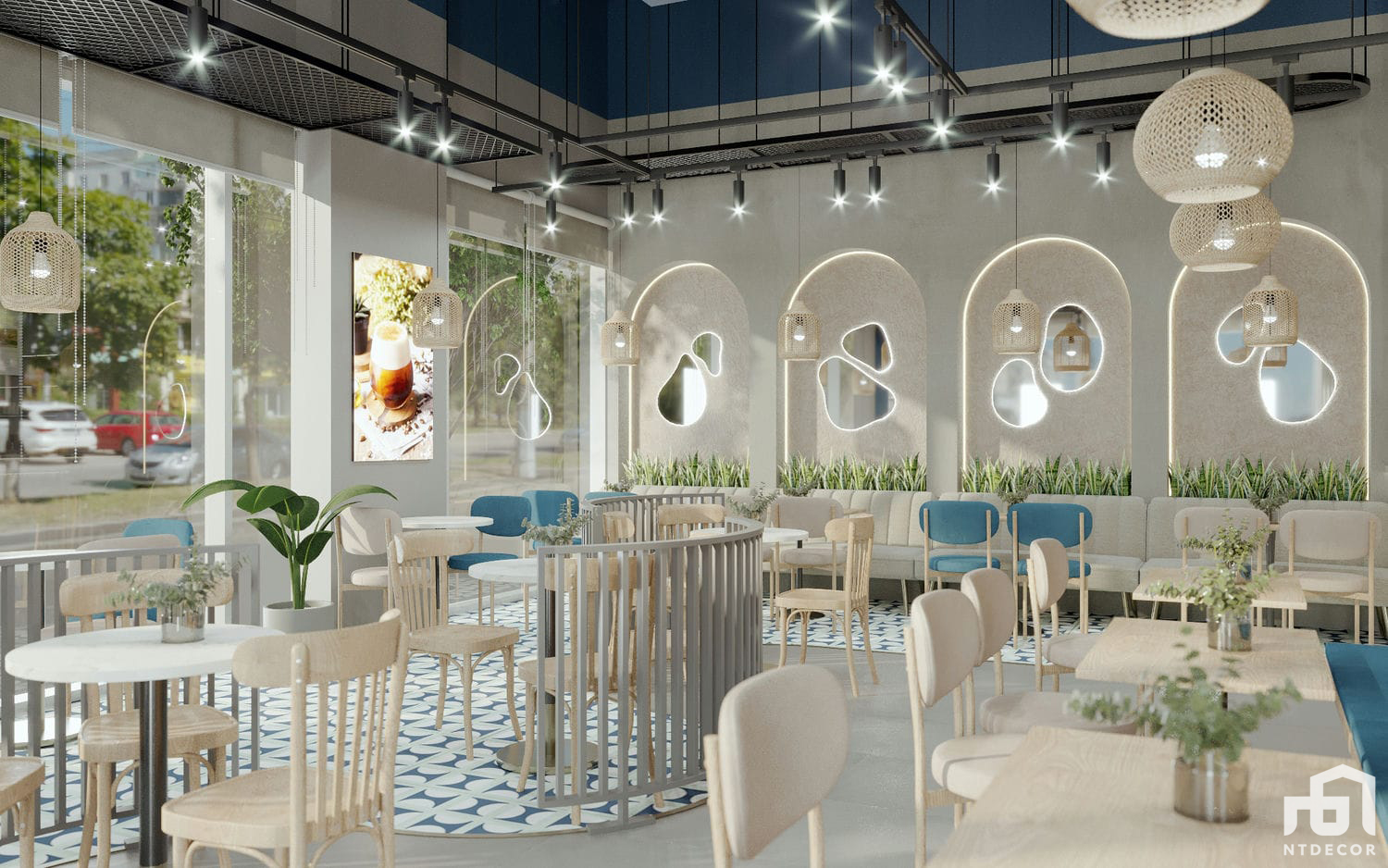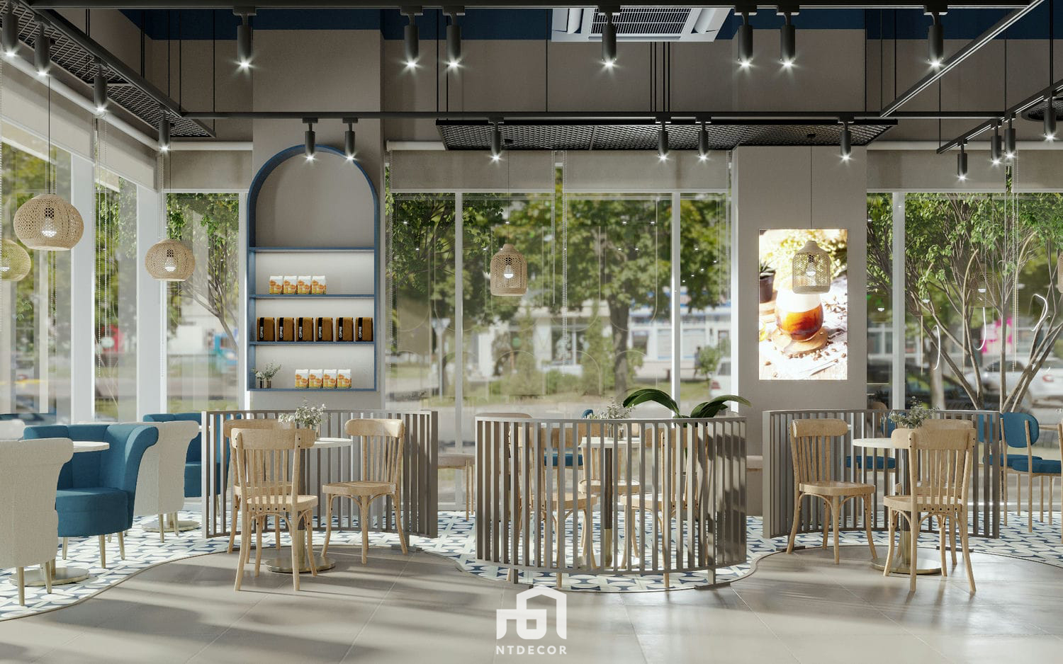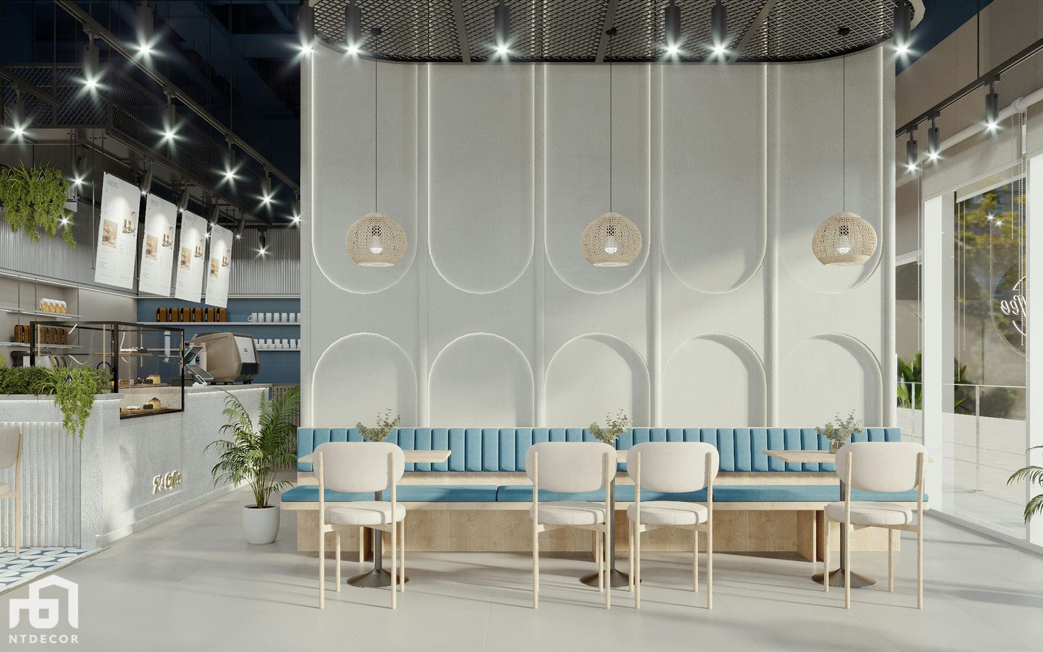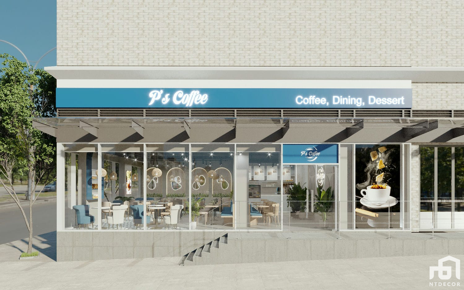 P’s Coffee is a project designed with a blend of countryside and modern styles, creating a unique and charming ambiance. With a spacious area of 150 m², this project offers a delightful setting for coffee lovers to indulge in their favorite beverages.